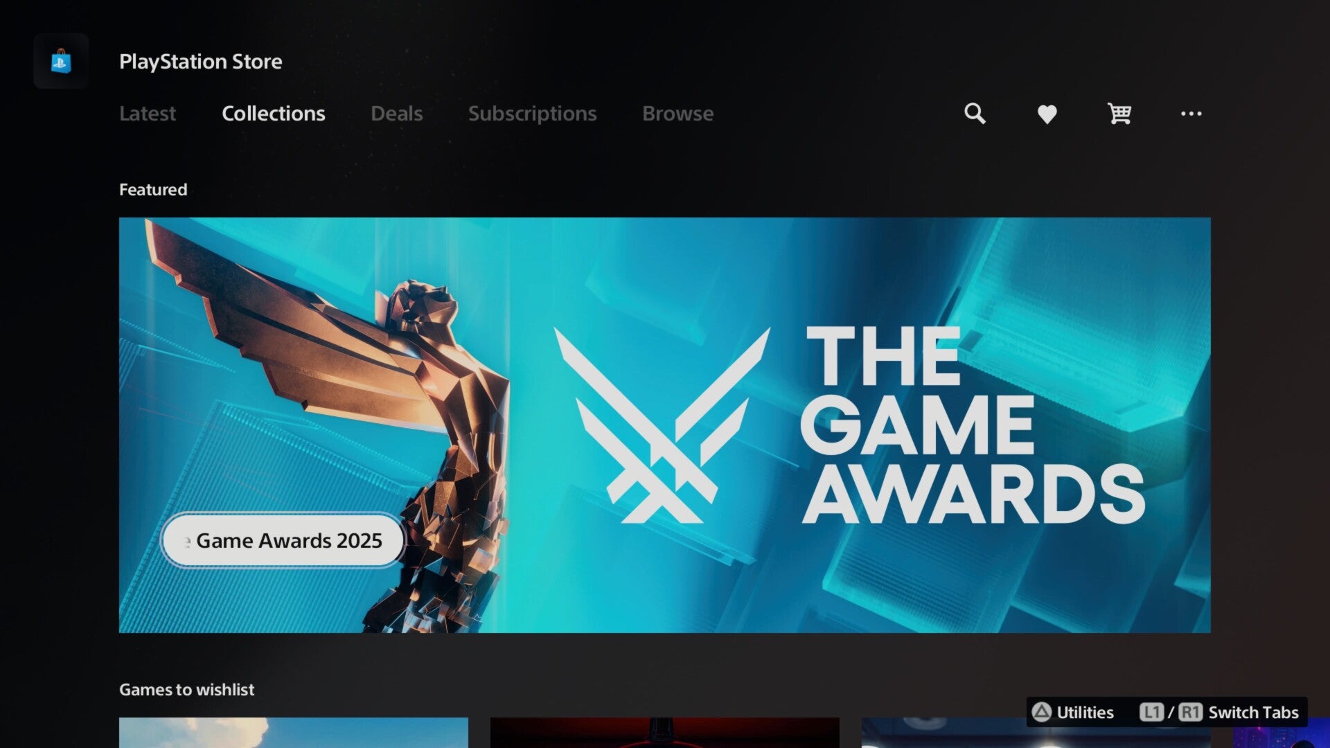 The Game Awards poster directly from the PlayStation 5 console. Screenshot: Shenay Mbemba